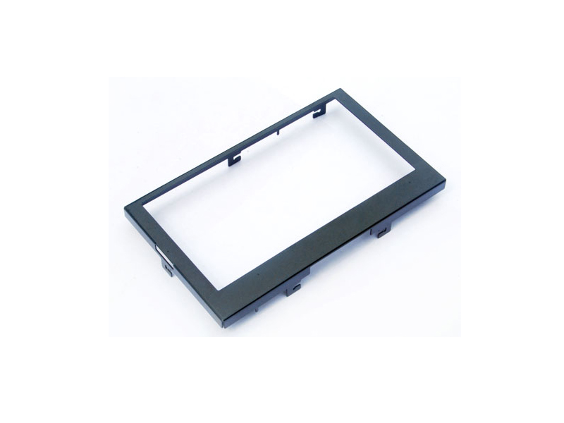 選用液晶屏固定鐵框固定液晶屏是液晶顯示模塊生產中普遍選用的液晶屏固定方法。液晶顯示模塊的組成部分有膠框和液晶面板,確切地說,液晶屏固定鐵框就是用來固定膠框和液晶面板的,使得整個拼裝結構緊密結合。現有技能中鐵框開模是直接一體成型規劃,鐵框100—體開模尺度較大,工藝不易管控,良品率較低。